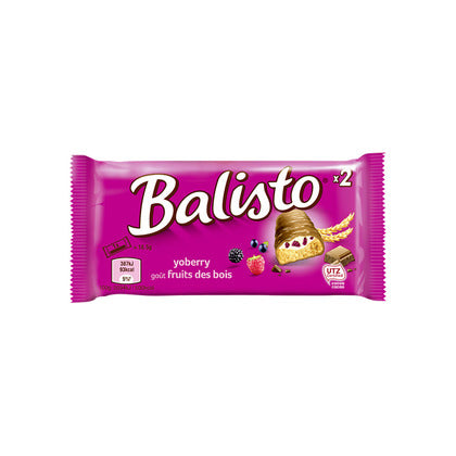 Ingredients: sugar, wholegrain (19%) (whole OAT FLAKES, WHOLEMEAL WHEAT FLOUR, WHOLEMEAL BARLEY FLOUR), sunflower oil, WHEAT FLOUR, cocoa butter, SKIMMED MILK YOGURT POWDER, cocoa mass, SKIMMED MILK POWDER, shea fat, LACTOSE, wild berries (2.6%) (blackberries, raspberries, black currants), butterfat ( from MILK), sweet whey powder (from MILK), emulsifiers (SOYA lecithin, mono- and diglycerides of fatty acids, sodium stearoyl-2-lactylate), palm fat, fructose syrup, salt, raising agent (sodium carbonate), coconut oil, palm kernel fat, acidity regulator (citric acid), gelling agent ( pectins), natural flavor, natural vanilla extract. (May contain: HAZELNUTS, ALMONDS).