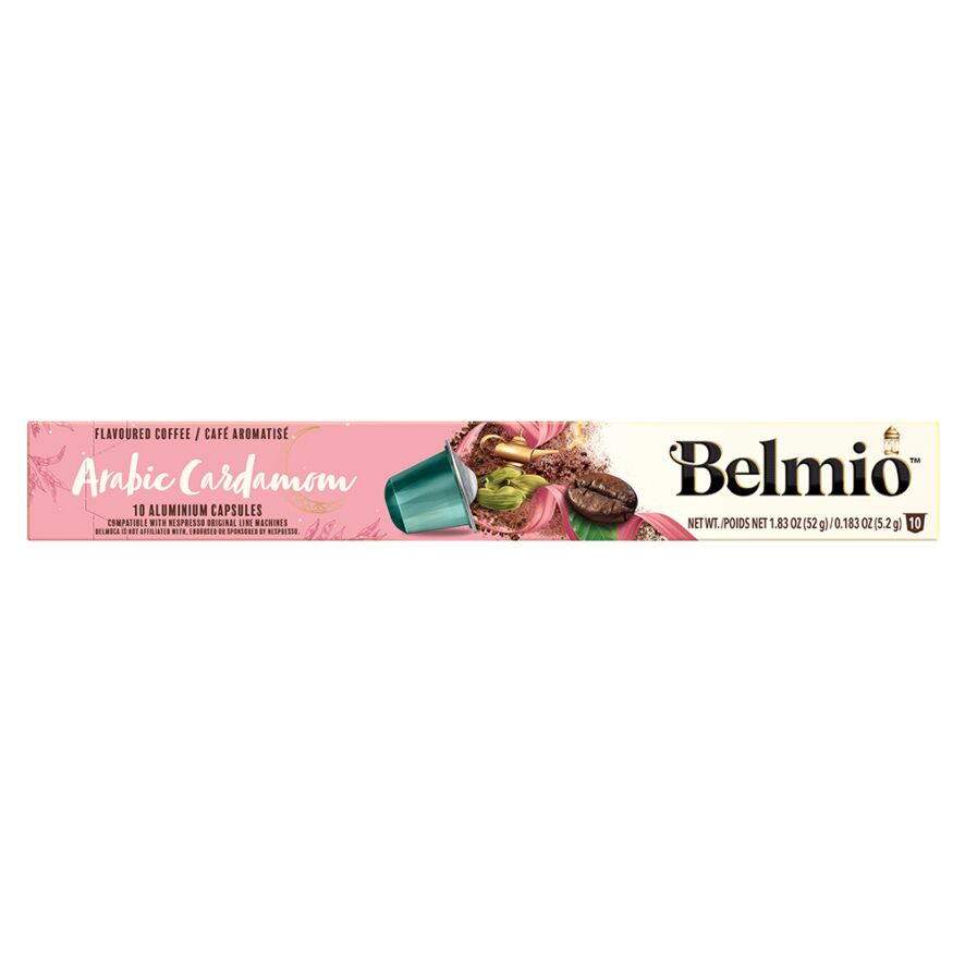 Belmio Arabic Cardamom Nespresso® capsules offer 100% Arabic cardamom coffee of the highest quality. Each capsule contains an exquisite blend of exquisite Arabic cardamom beans. Discover an unmistakable, sensual aroma and an incomparable taste.