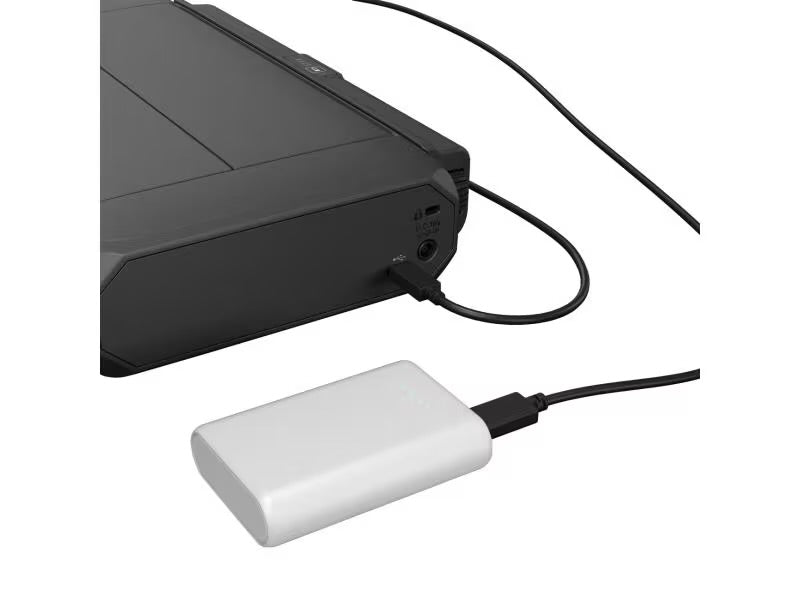 The 2.3 kg lightweight, portable Canon PIXMA TR150 is the perfect printer for your mobile office. With dimensions of just 32.2 x 21 x 6.6 cm, you can easily take it with you and use it anywhere, even where there is no power outlet, thanks to its independent battery operation. Thanks to a very high print resolution of 4800 x 1200 dpi, it produces very sharp printed products with nuanced color gradations.