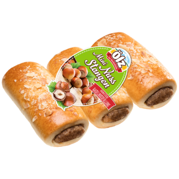 The Ölz Mini Nuss Sticks are fine yeast dough pastries with a juicy, aromatic hazelnut filling. Sprinkled with delicate almond flakes. They are the perfect snack for all nut lovers in between and ideal to take with you.