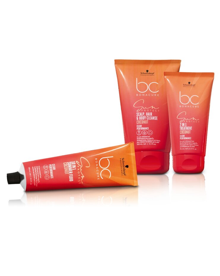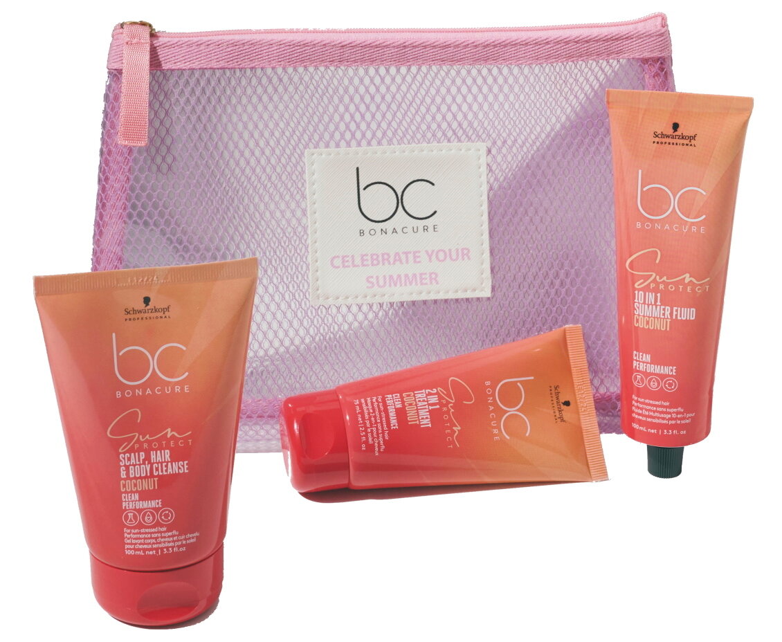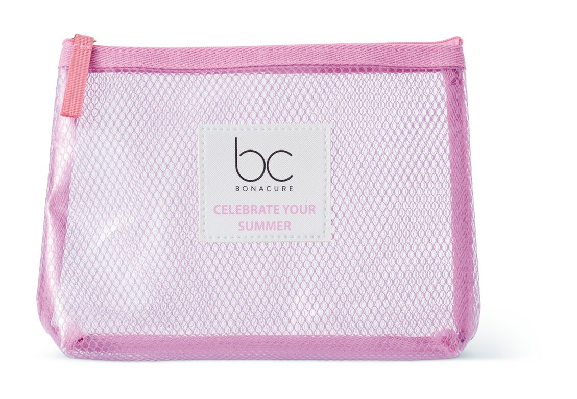 The BC Sun Protect Pouch is your perfect travel companion and ensures optimal shine and hair protection in summer. The new BC SUN PROTECT combines two wonderfully natural ingredients: cold-pressed coconut oil and shea butter, which are known for gently removing residue from the hair, skin and scalp and using panthenol to balance moisture levels. The medium-chain fatty acids in coconut oil have antimicrobial properties that can protect the skin from harmful bacteria. In addition, BC SUN PROTECT supports wound healing and helps to reduce inflammation.