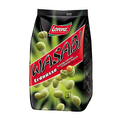 ARACHIDES 44%, amidon de maïs, huiles végétales (tournesol, colza, coco), farine de riz, sucre, sel, poudre de wasabi, poudre d'oignon, amidon modifié, chapelure (contient du GLUTEN), dextrose, extrait de levure, arôme, colorant alimentaire (spiruline concentré), acidifiant (Acide Citrique), Colorant (Cuivre Chlorophylle). Peut contenir des traces de noix.