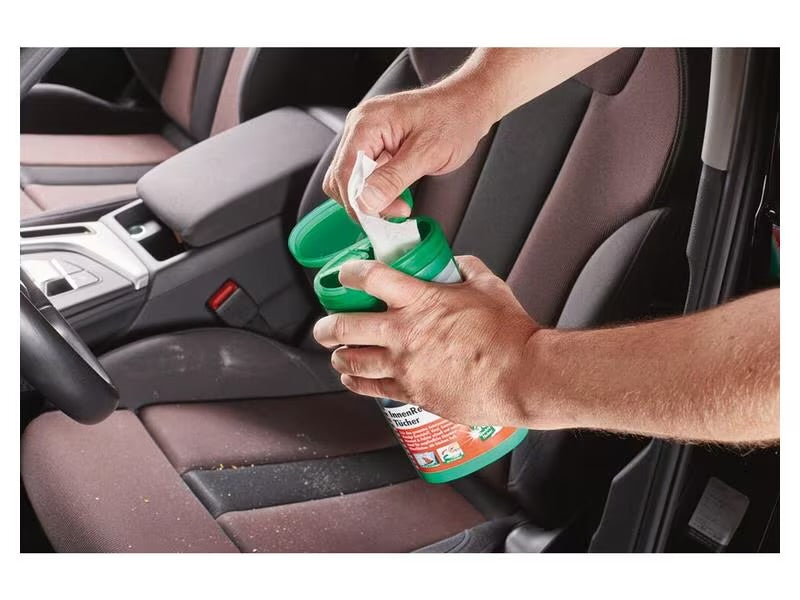 Chiffons humides pour un nettoyage rapide, facile et approfondi de toutes les surfaces de l'habitacle du véhicule telles que : B. Cockpit, ciel de pavillon, panneaux en plastique, sièges, moquette, sellerie et cuir. Idéal pour les déplacements et entre les deux. Pour la voiture, les loisirs et la maison.