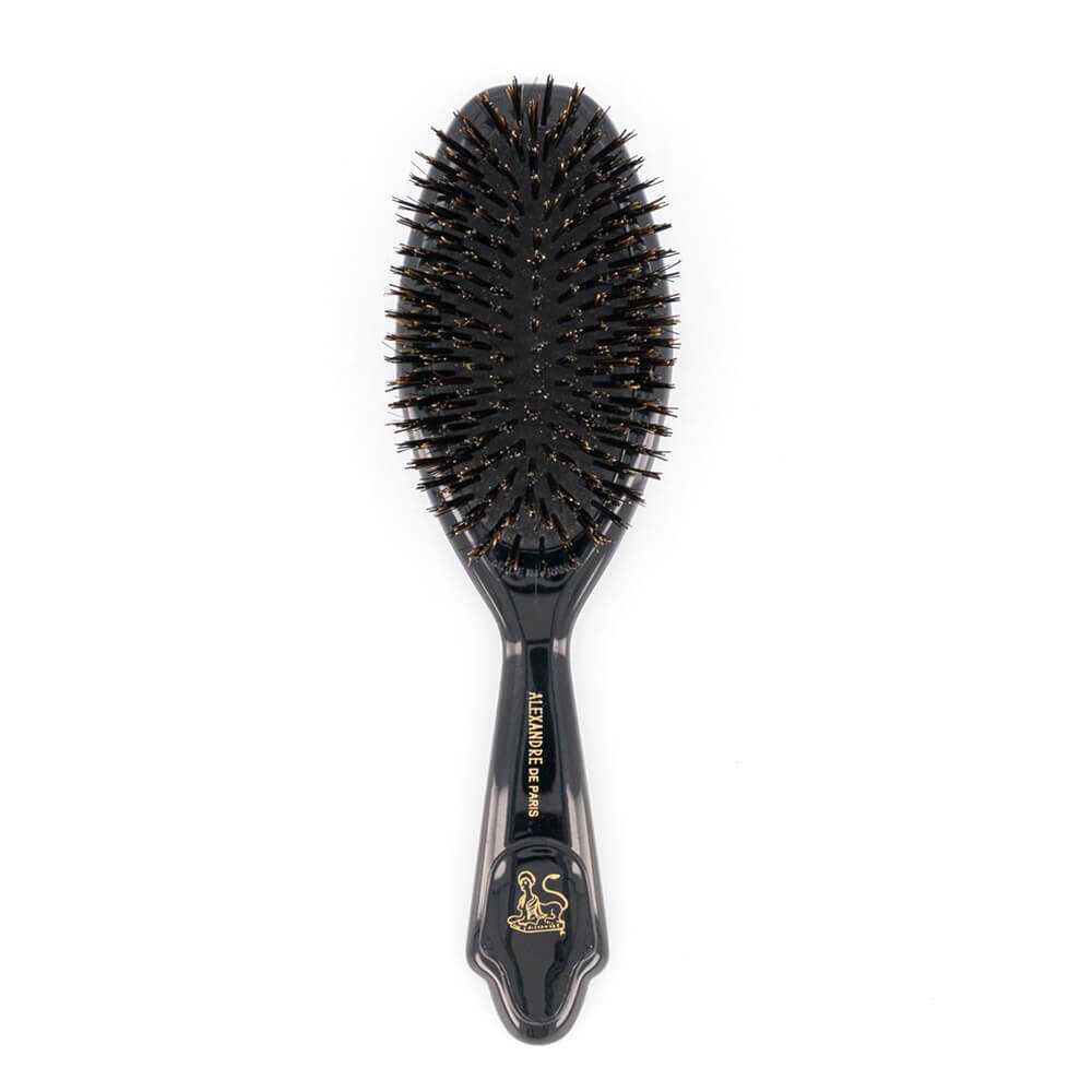 Mit reinen Wildschweinborsten. Die Naturborsten pflegen das Haar besonders schonend und zaubern einen wunderbaren Glanz. Die Frisierstifte massieren und beleben die Kopfhaut zudem kann die Bürste aus reinen Wildschweinborsten auf nassem und auf trockenem Haar angewendet werden.