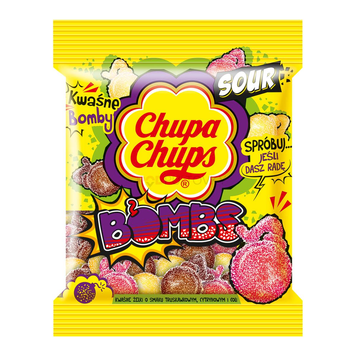 Erleben Sie den ultimativen Geschmackserlebnis mit Chupa Chups Bombs Sour! Mit dem 90g-Päckchen haben Sie eine saure Geschmacksexplosion auf Ihrem Tisch. Die witzigen Fruchtgummi-Bomben in den 3 Geschmacksrichtungen Cola, Zitrone und Kirsche begeistern mit ihrer super-sauren Ummantelung. Genießen Sie ein spritziges Vergnügen mit hohem Suchtfaktor.