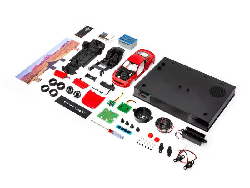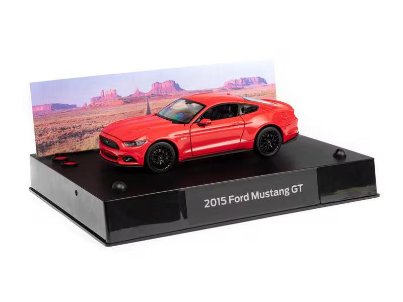 Wie kein anderes Auto aus den USA verkörpert der weltberühmte Ford Mustang amerikanische Automobilkultur. Seit 1964 ist dieses Modell ein Dauerbrenner im Fahrzeugprogramm der Ford Motor Company. Auch die aktuelle sechste Generation der Sportwagenikone vermittelt Speed und Style. Die aufregenden, klassischen Elemente zitierende Sportwagenform, ein kraftvoller 5.0-Liter-V8-Motor und das unschlagbare Image sorgen für Faszination auf der Strasse wie in der Sammlervitrine. In 24 Schritten stecken und schrauben Sie eine hochwertige Erlebniswelt rund um eine Modellversion des 2015 Ford Mustang GT im Massstab 1:24. Ein grossformatiges Begleitbuch führt durch die Geschichte des Ford Mustang seit Produktionsbeginn 1964.
