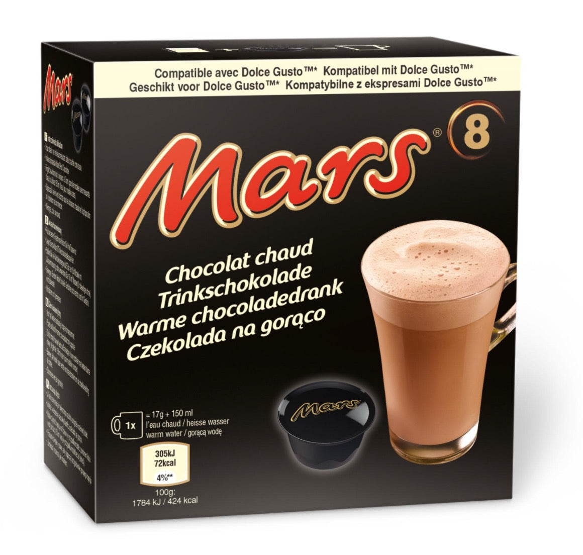 Mars 8 Kapseln für Dolce Gusto bieten eine einzigartige Schokoladen-Drink-Erfahrung. Genießen Sie eine leckere Kombination aus Kakaopulver und leichtem, köstlichem Milchgeschmack genau wie Sie es von Dolce Gusto erwarten. Mit 8 Kapseln pro Verpackung bleibt Ihr Kaffee-Erlebnis ununterbrochen und die Pads sind einfach zu bedienen.