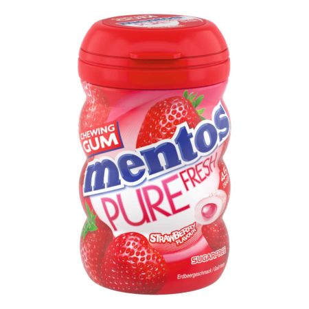Mentos Pure Fresh Strawberry Kaugummi schmeckt nach frischen Erdbeeren. Der 90 g Beutel beinhaltet genügend Kaugummi, um Deinen Gaumen zu erfreuen, da die langanhaltende Frische Deinen Tag versüßt. Genieße den süßen und erfrischenden Geschmack, der Dich begeistert, jedes Mal, wenn Du Mentos Pure Fresh Strawberry Kaugummi isst.