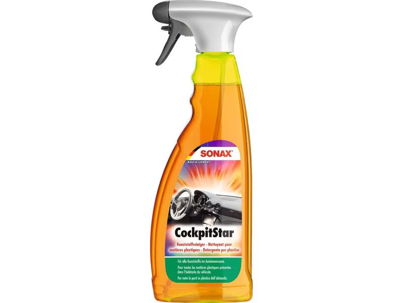 Mit trendigem, frischem Duft. Reinigt und pflegt alle Kunststoffteile im Auto. Wirkt antistatisch und staubabweisend. Der Kunststoff wird vor Wiederverschmutzung geschützt. SONAX CockpitStar ist speziell geeignet für matte, strukturierte Oberflächen und Holzarmaturen. Störende Reflektionen an der Frontscheibe werden vermieden. Das ursprünglich matte Aussehen des Cockpits bleibt erhalten. Silikonfrei. Lösemittelfrei