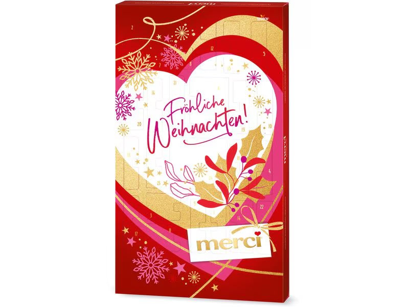 Adventskalender mit gefüllten und nicht gefüllten Schokoladen-Spezialitäten